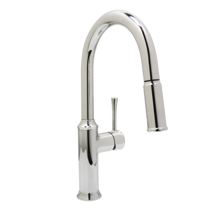 Elegant styling of the Albany kitchen faucet with its grand high-arc spout and fine exquisite details. Along with the Albany’s gorgeous looks, the Albany also offers an effortless graceful handle, and an elegant two setting pull-down sprayer. The Design of the Albany kitchen faucet with all its features will be a beautiful addition and the main focal point of any kitchen.