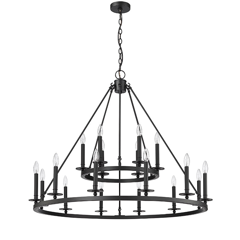 Unassuming, yet thoroughly striking, the Florence Collection celebrates simple candle-style luminaries and minimalistic lines in a nod to antique style lighting. The elegant wagon wheel design is steel construction that is further enhanced by the matte black finish.