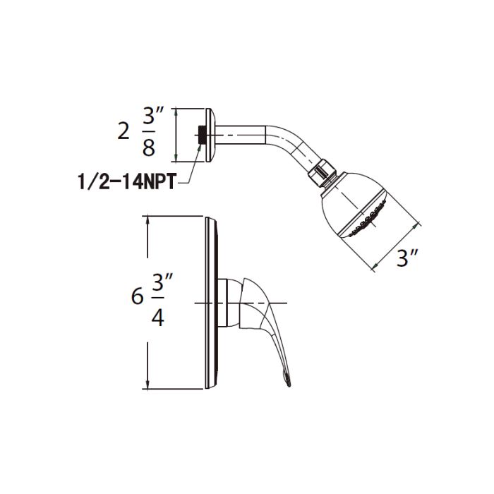 • 3" face single setting showerhead with shower arm and flange