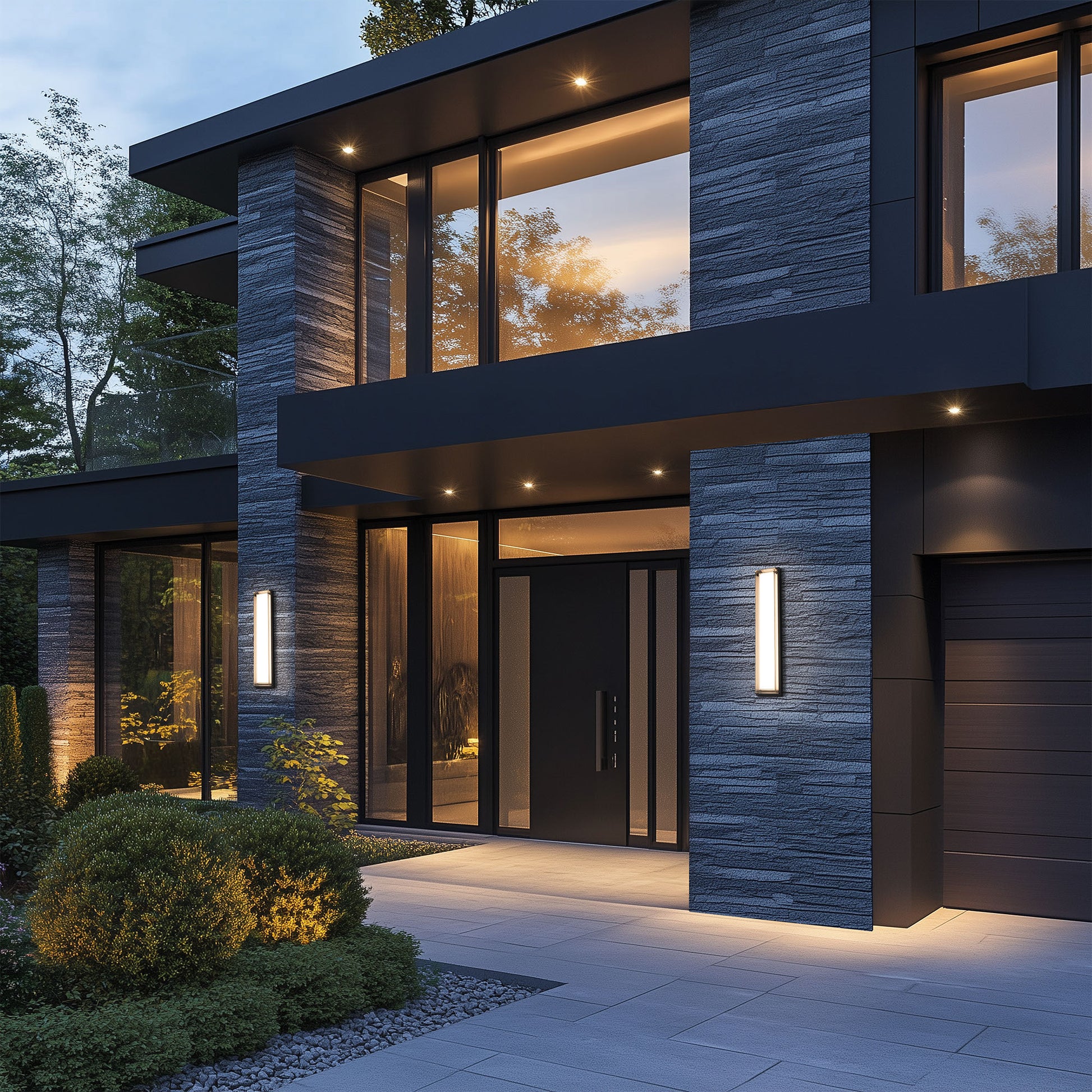 Frozen. The Ice Bar outdoor wall light showcases a substantial gleaming backplate behind a clear glass shade. The etched glass interior adds texture, creating a glowing rectangle of soft illumination from concealed, color temperature adjustable LEDs. Offered in 26 and 34-inch sizes, Ice Bar is finished in black.