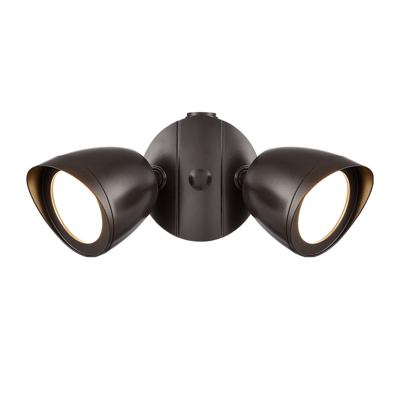 The perfect solution for all your exterior security needs, the adjustable Twin Head Basic Floodlight with motion sensor is constructed of long-lasting aluminum and can be easily directed where needed. These sturdy fixtures are available in powder coat black, matte white, or powder coat bronze. Whether mounted on the wall or under an eave, they provide intense and focused illumination ideal for lighting up any exterior area.