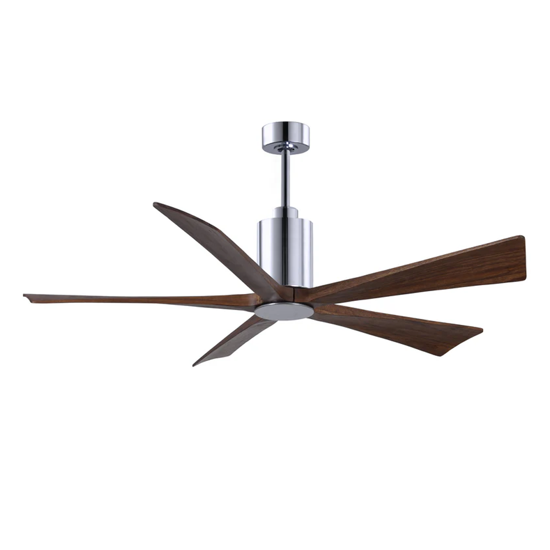 A complement to any commercial or residential space, the Patricia-5 seamlessly combines innovation with simple, refined design. Its elegant aesthetic belies its robust construction. Solid wood walnut, matte black, matte white, or barn wood tone blades revolve around a balanced, cylindrical DC motor housing. Air is circulated efficiently with barely more than a whisper. An eco-conscious LED light kit completes the package, making Patricia-5 sophisticated, efficient and green. Constructed of cast aluminum and heavy stamped steel, the Patricia-5 carries a limited lifetime warranty.