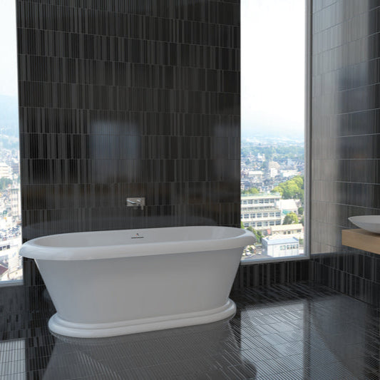 This graceful freestanding contemporary design with its rounded deck and integral pedestal embodies luxury along side comfort. The Rianna includes an integral waste & overflow in polished chrome, and is available in all standard colors. Compliant with UL and cUL. Linear with Toe Touch Drain