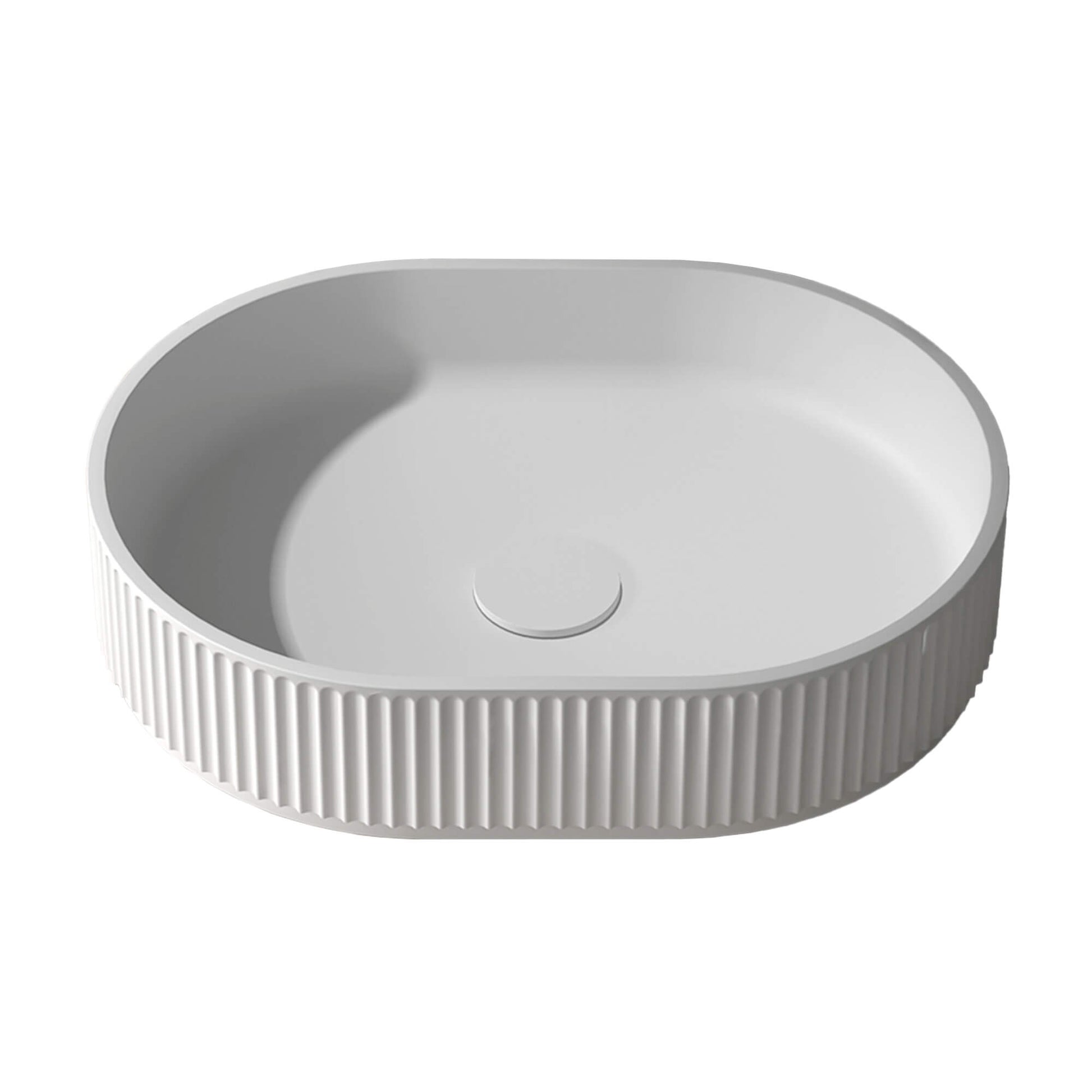 Ruvati 19 x 14 inch Fluted Vessel Bathroom Sink epiStone Solid Surface Modern Oval Matte White