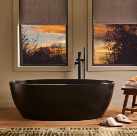 Introducing Ruvati's latest innovation: Italian-made epiStone freestanding bathtubs are the perfect addition to your modern bathroom. EpiStone is an engineered stone that we developed using state-of-the-art technology to bring exceptional strength and beauty to our bathroom collection. It is composed of 70% crushed natural stone and minerals bonded with a proprietary resin that gives the material its strength and durability. Naturally beautiful with a look similar to real stone, the epiStone material is strong, durable, and has a luxurious satin finish that is silky to the touch. Made in Italy, the Canali collection of freestanding bathtubs are a luxurious statement piece accompanied by easy installation and creative placement options. The double-ended oval shape provides maximum comfort and allows for easy cleaning. Available in white or black, the Canali collection is the most modern option for your bathroom renovation.