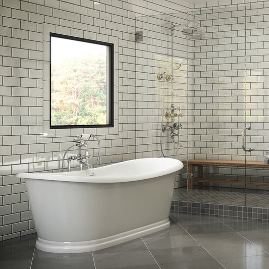 This new extraordinary, modern, simply remarkable design has beautiful along with perfection stamped all over it. With 4 available exterior shells, Smooth Nickel, Hammered Nickel, Smooth Unlaquered Brass and White acrylic. The Sawyer is part of the Americh Freestanding Collection and can be purchased as a Tub Only. Linear with Toe Touch Drain