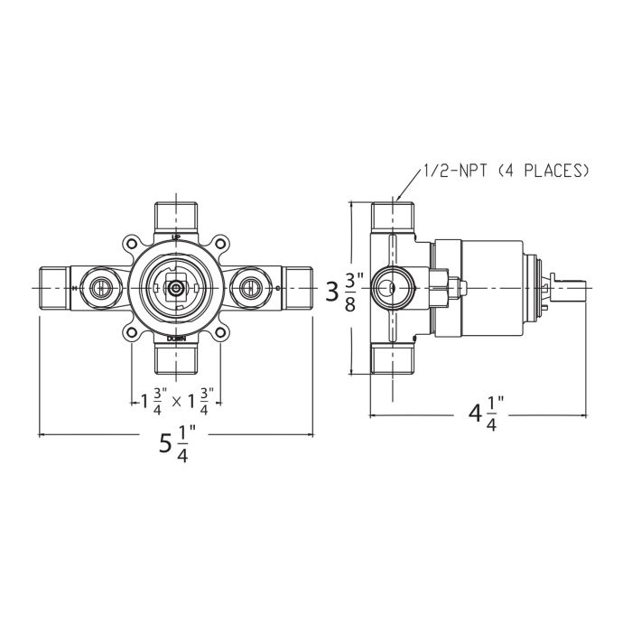 High quality forged brass rough-in shower valve with built-in diverter valve. The Huntington Brass diverter rough-in shower valve will allow you to switch between the shower and tub spout with a turn of the handle. This opens the design possibilities to use many different designer tub spouts without the diverter knob, or use an accessory like a hand shower instead of the tub spout.