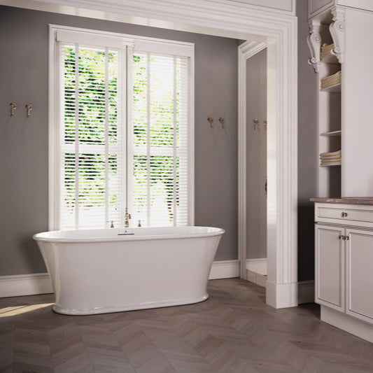 This divine architectural design is beautifully sculpted from Mineral Cast creating a radiant solid surface, which is available in a glossy white, matte white or custom finish. The Somerset is part of the Americh Roc Collection and can be purchased as a Tub Only. The Somerset includes an integral waste and overflow and a 5-year warranty on the tub vessel. Linear with Toe Touch Drain