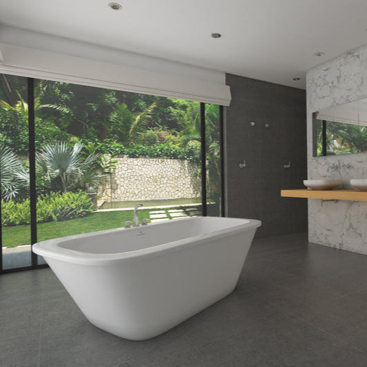 This sleek, stylish, contemporary freestanding design with its majestic look has a spacious deck and roomy interior. The spacious deck is perfect for faucet mounting, giving you plus or minus six and a half inches in width! The Sorrel is a two-piece tub with a seamless exterior as the apron pops right off from under the deck for easy installation. The Sorrel is also available in dual color, colors that are available are red, black, and silver. The Sorrel is part of the Americh Freestanding Collection and includes an integral waste and overflow in polished chrome or whichever finish you specify at the time of your order. The Sorrel is also available in all Americh Standard Colors and can be purchased as a Tub Only. Linear with Toe Touch Drain