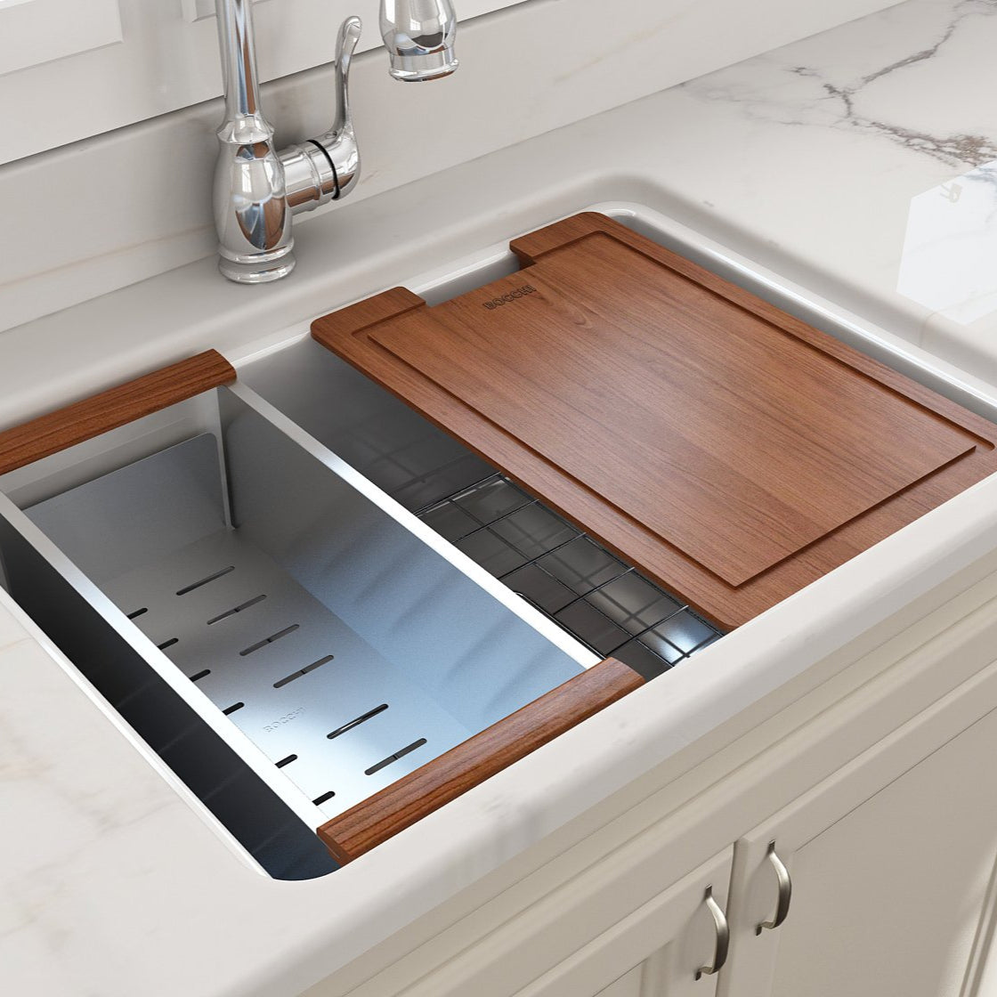 BOCCHI Farmhouse Sinks bring back the ultimate material to your kitchen. Fireclay, a 100% natural organic and recyclable material used by craftsman for centuries to create timeless appliances has now returned to your kitchen. With the firing in our kilns up to 2000°F temperatures, Fireclay becomes the most durable material used in today's kitchens. Thus, dealing with extreme heat coming from pots and pans is definitely not a problem. Due to their special glaze coating fused with the fireclay body, our sinks have a non-porous, uniform, scratch and stain resistant surface. With its protective bottom grid and distinctive looks, BOCCHI Farmhouse Sinks are truly crafted to match your design and functional desires. Designed for easy retro-fit. Features: