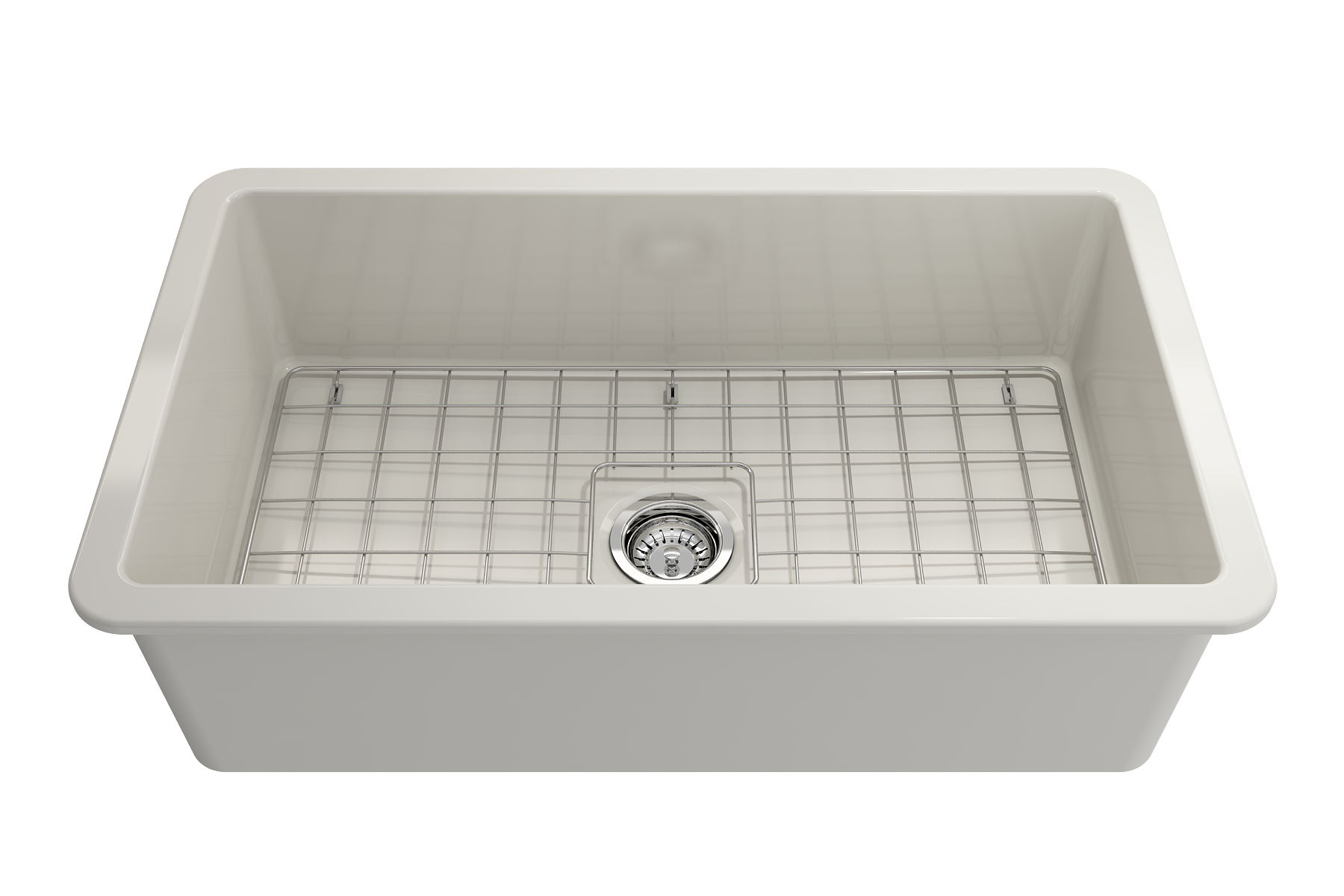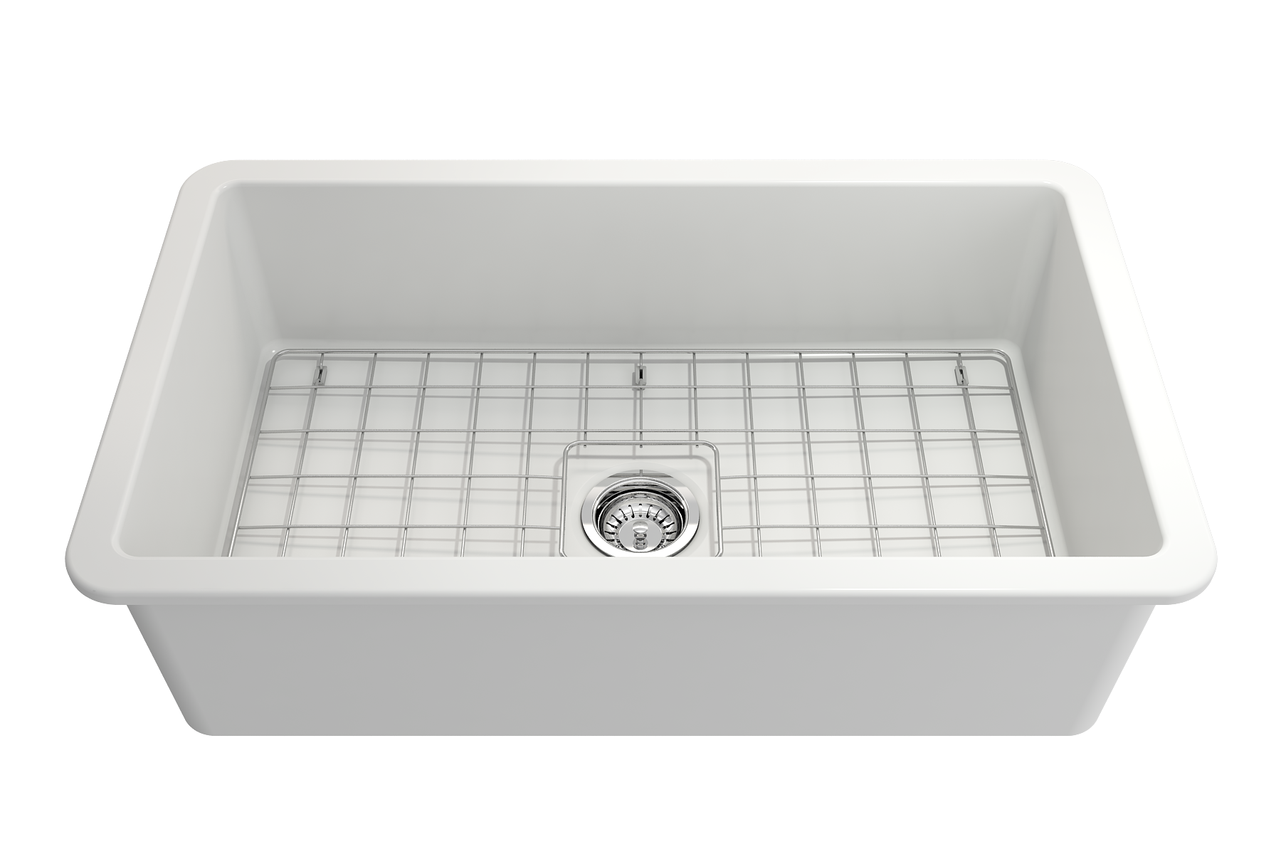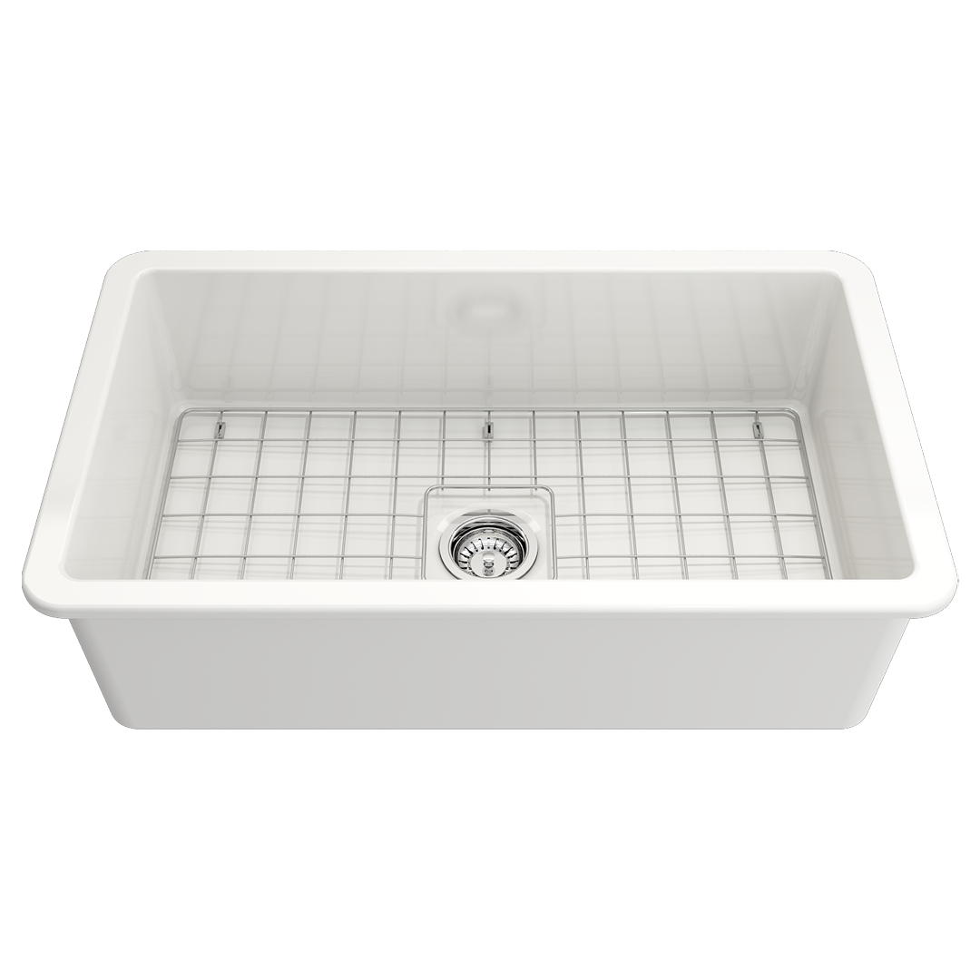 BOCCHI Farmhouse Sinks bring back the ultimate material to your kitchen. Fireclay, a 100% natural organic and recyclable material used by craftsman for centuries to create timeless appliances has now returned to your kitchen. With the firing in our kilns up to 2000°F temperatures, Fireclay becomes the most durable material used in today's kitchens. Thus, dealing with extreme heat coming from pots and pans is definitely not a problem. Due to their special glaze coating fused with the fireclay body, our sinks have a non-porous, uniform, scratch and stain resistant surface. With its protective bottom grid and distinctive looks, BOCCHI Farmhouse Sinks are truly crafted to match your design and functional desires. Features: