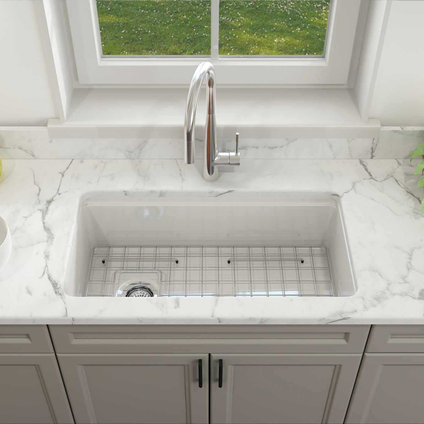 • GUARANTEED FINISH that is UV-safe with our TRUE-TONE COLOR in classic white high-gloss that withstands indoor or outdoor exposure to preserve its color and beauty for a LONG-LASTING look. ULTRA-DEEP single-bowl provides ample depth while the LARGE BASIN makes it easy to fit pots, pans and more with ease. Soft interior edges and superior glazing make for EASY-CLEANING and maintenance. HEAT SAFE material that is THERMAL SHOCK RESISTANT and safe for hot pots and pans that won’t age, crack or craze over time.