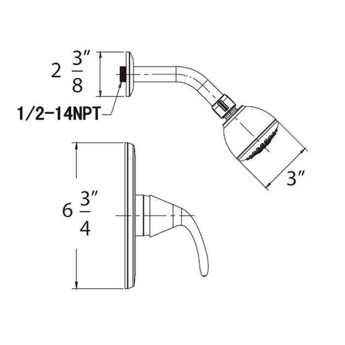 • 3" face single setting showerhead with shower arm and flange